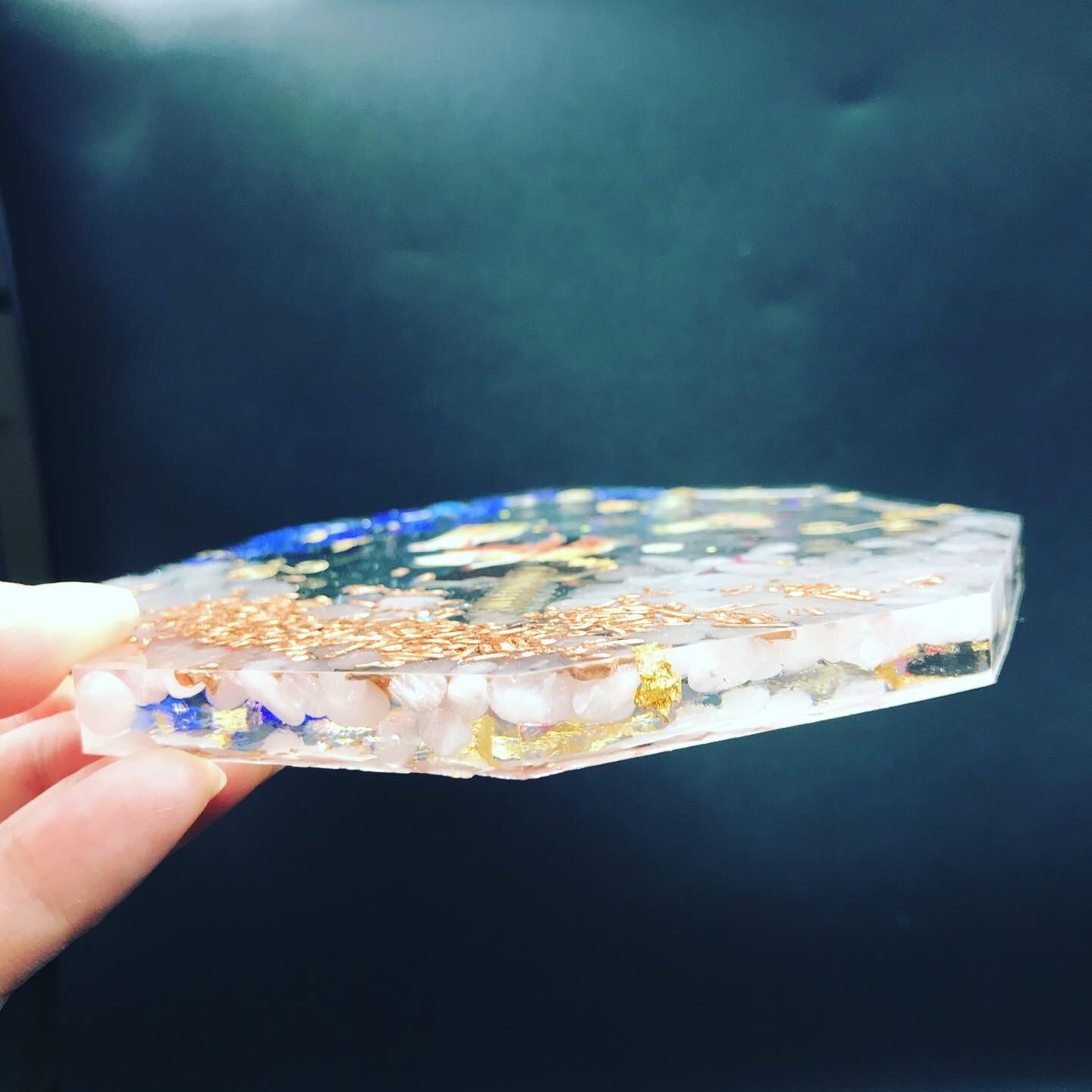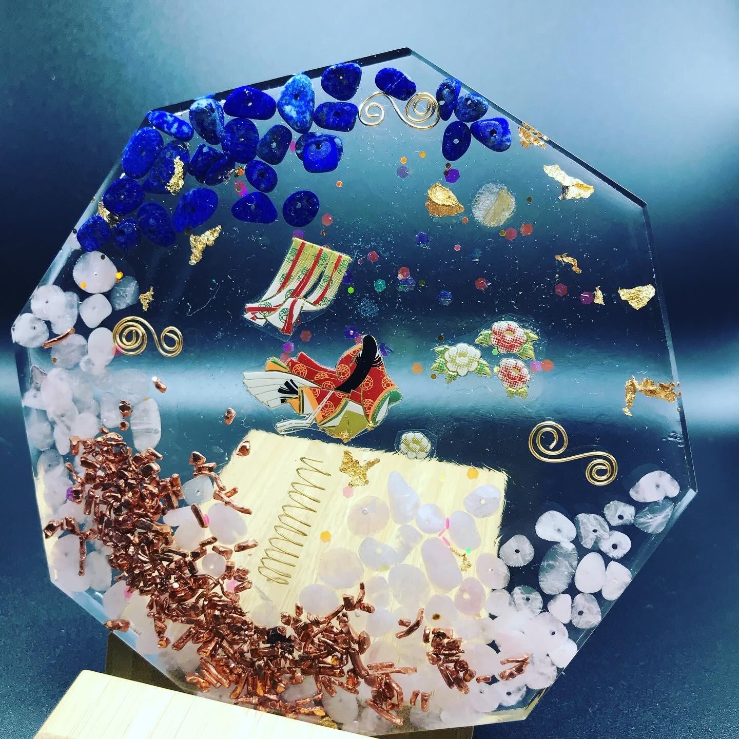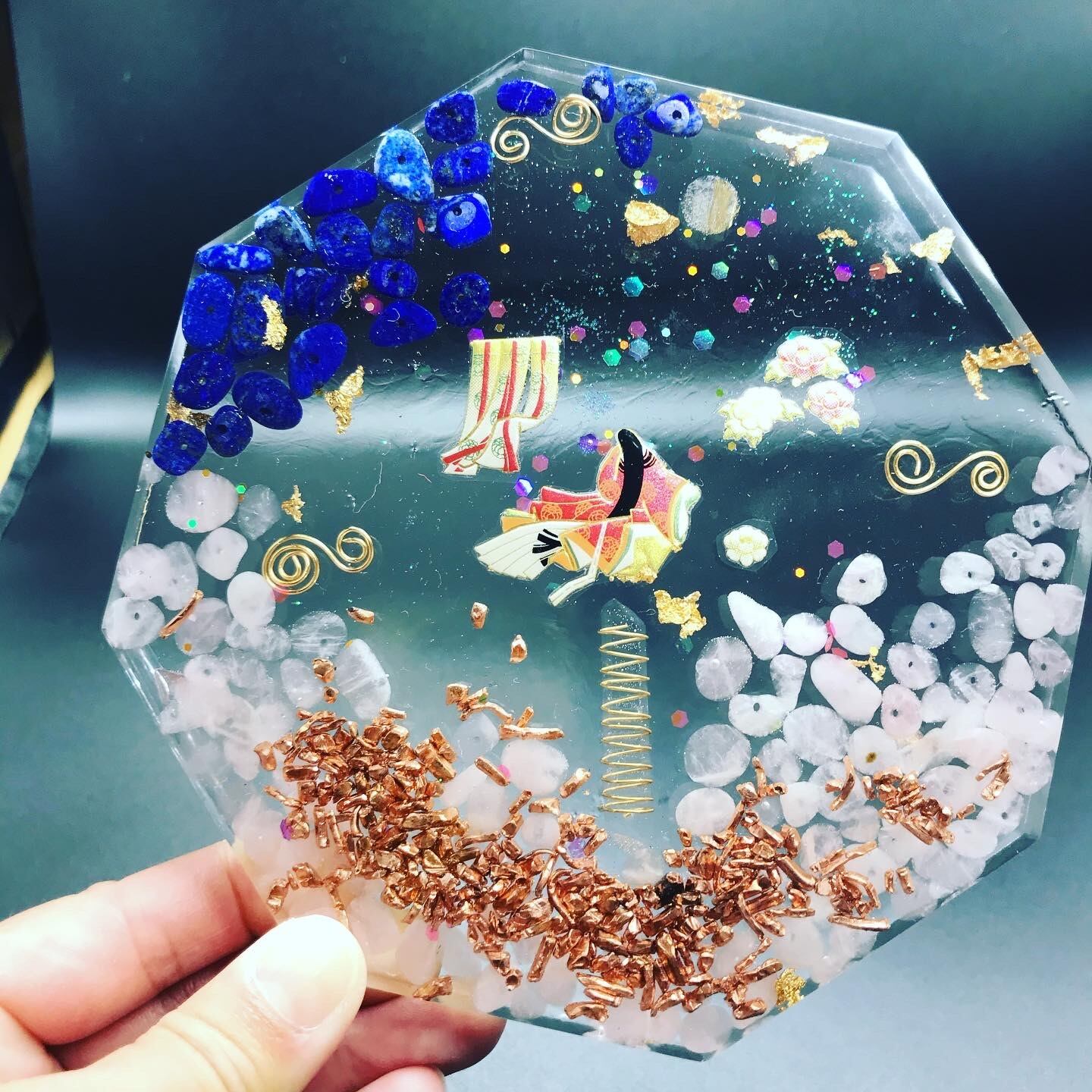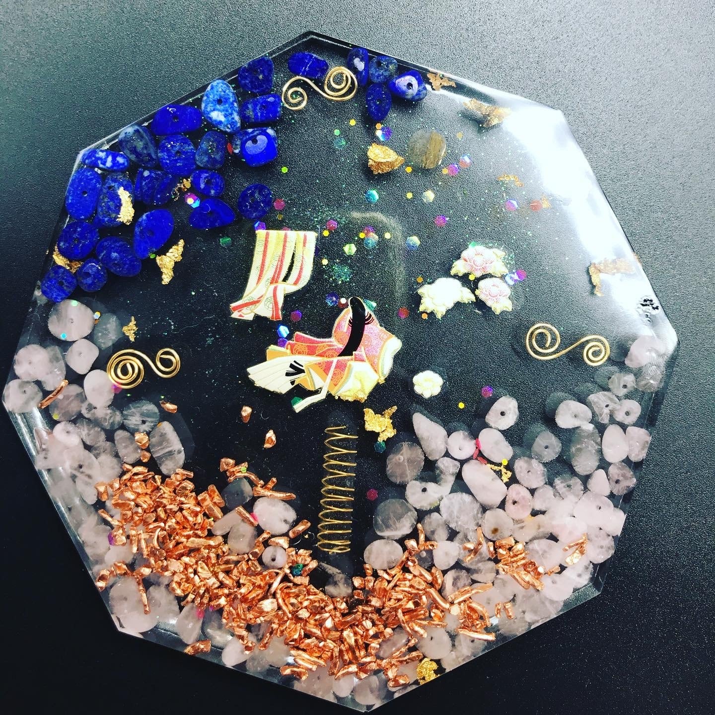 こちらのオルゴナイトは八角形で、かぐや姫が貴方の願いを叶えてくれます。中には無限の豊かを手に入れる宇宙マネーオイルも投入しています。