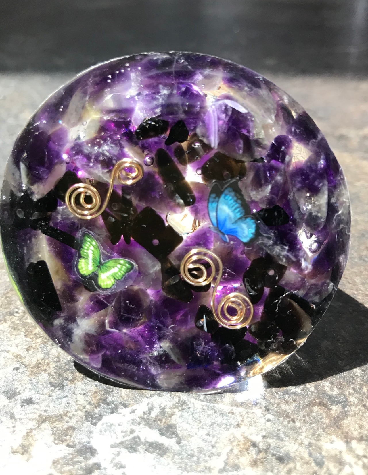 オルゴナイトの効果はもちろん、アクティベーションソルトの効果、更にはアメジストをふんだんに閉じ込めましたので効果は絶大です。
