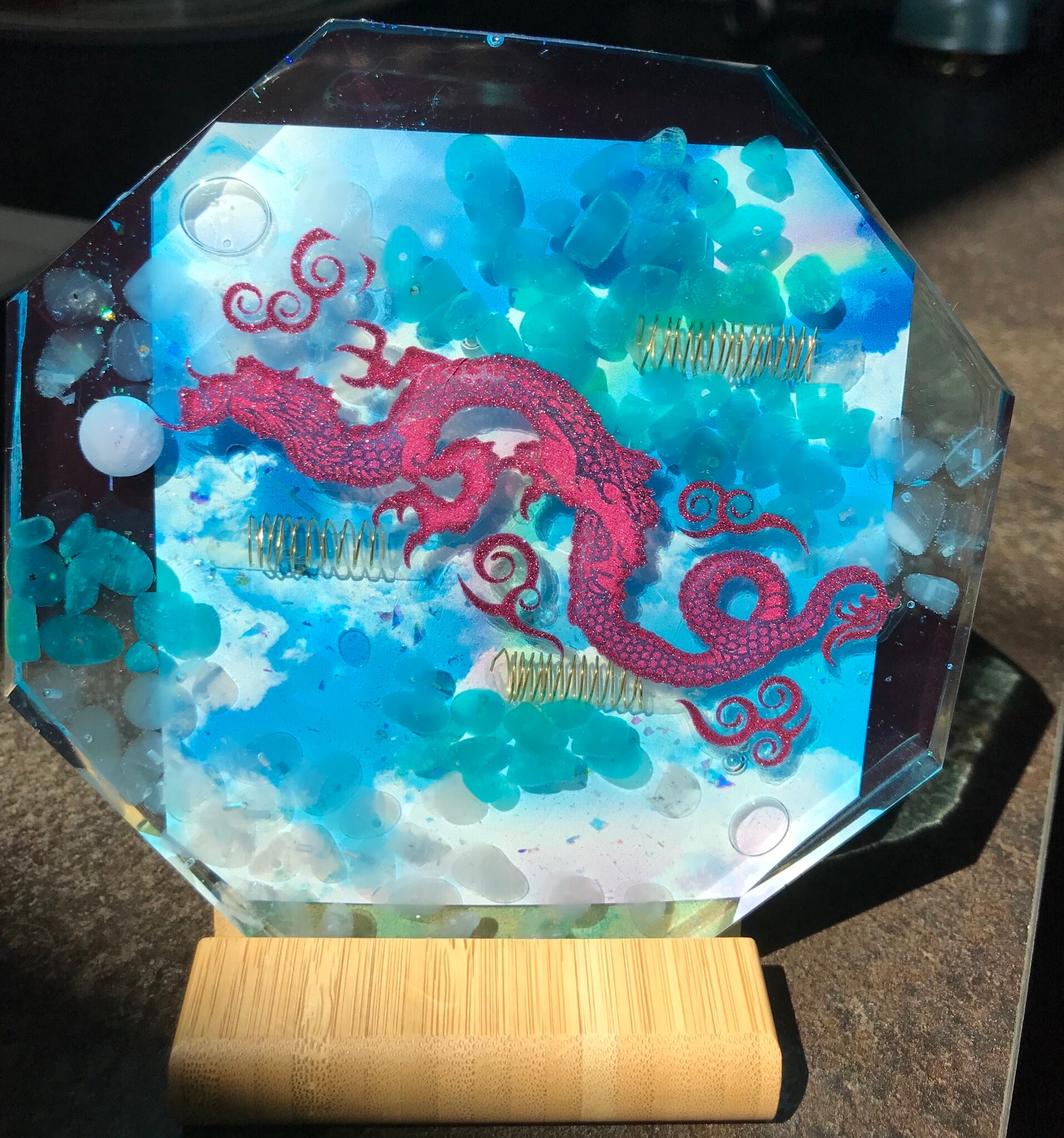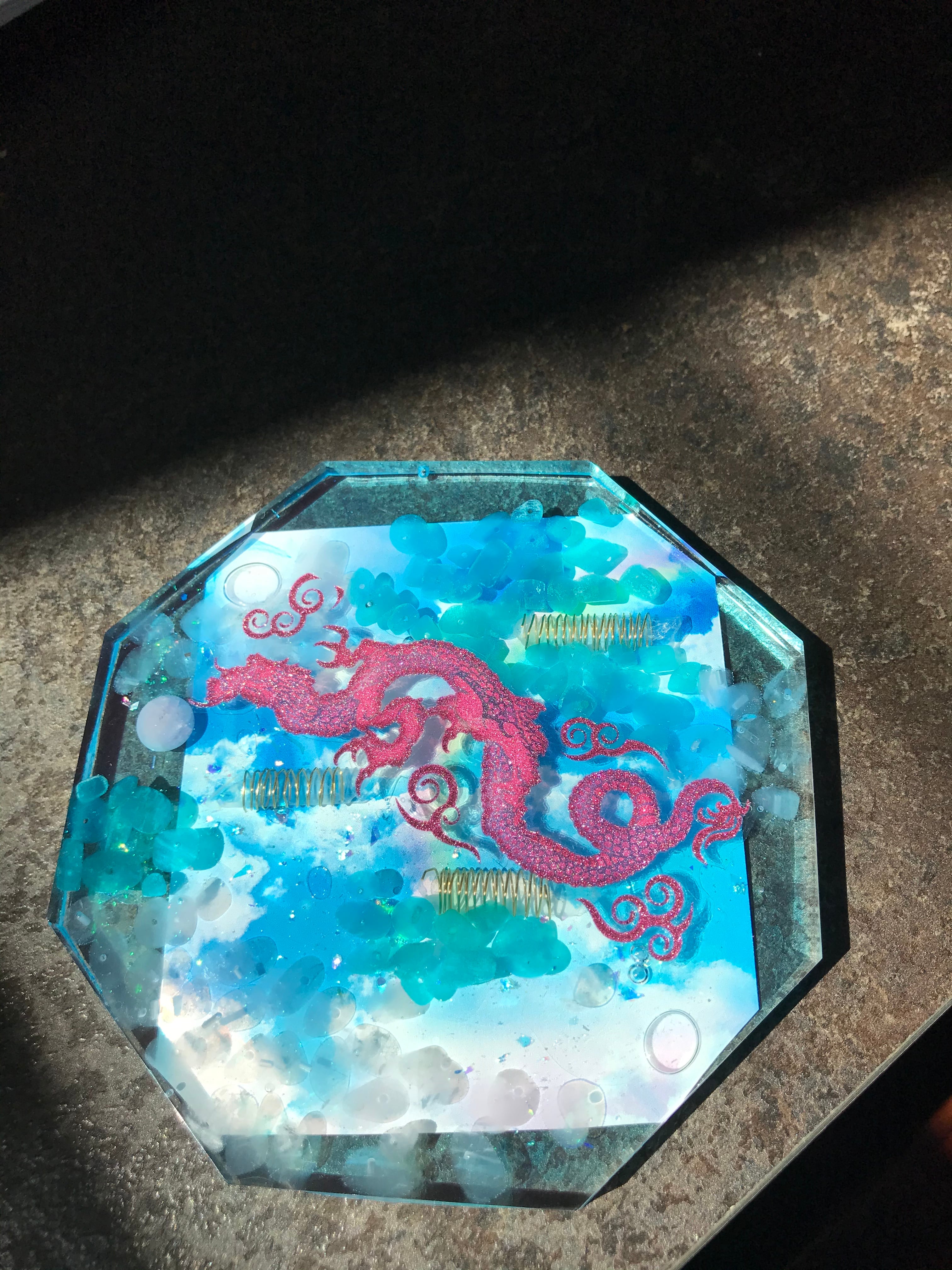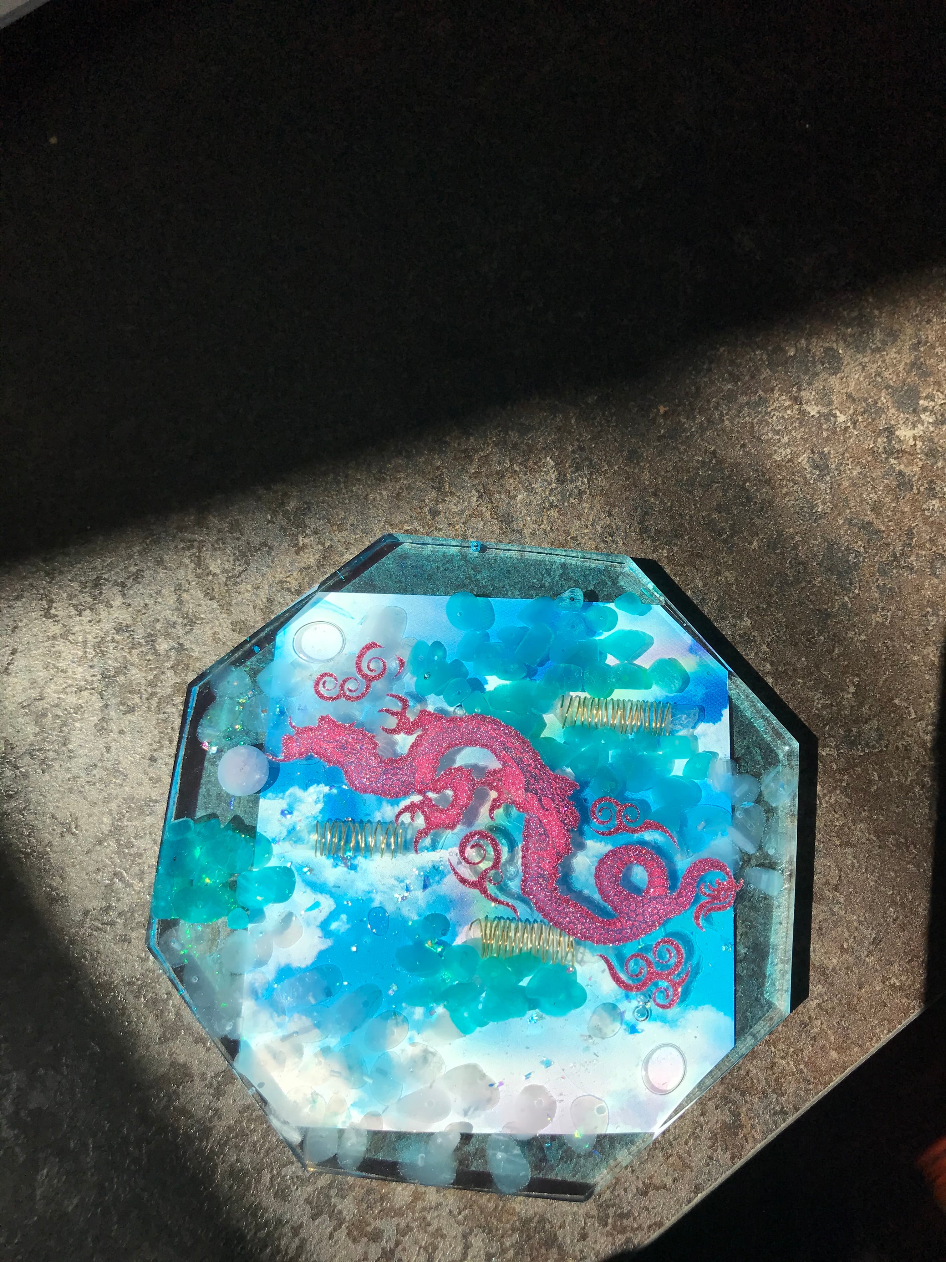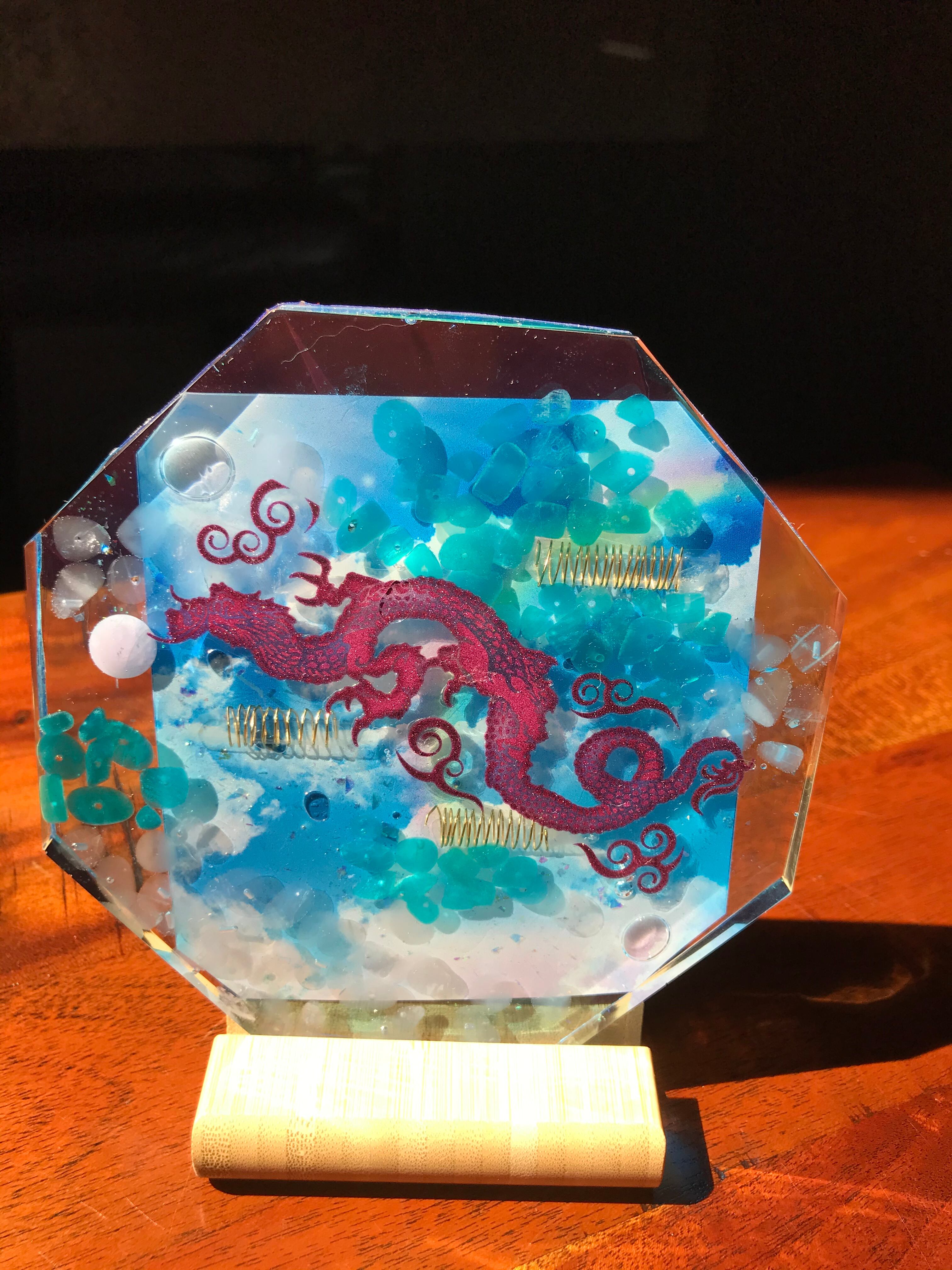 バックには綺麗な雲と虹。先の見通しを龍が連れて行ってくれます。