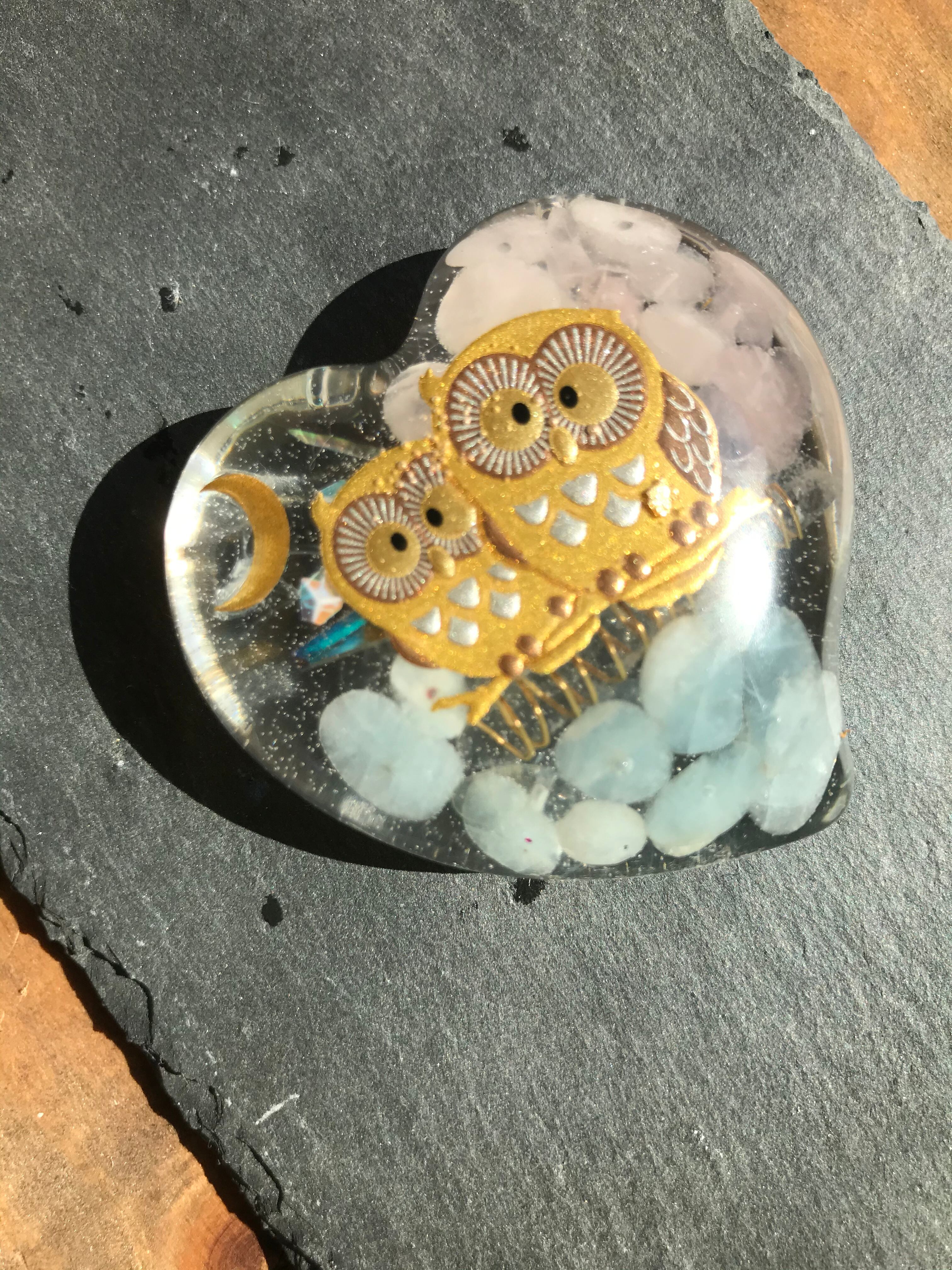 オルゴナイトは、金属や水晶などの鉱物(無機物)樹脂(有機物)で固めたもので、自然界に存在するネガティブなエネルギー(電磁波・放射線・想念など)を吸収し、ポジティブなオルゴン・エネルギーを発生する装置と言われています
