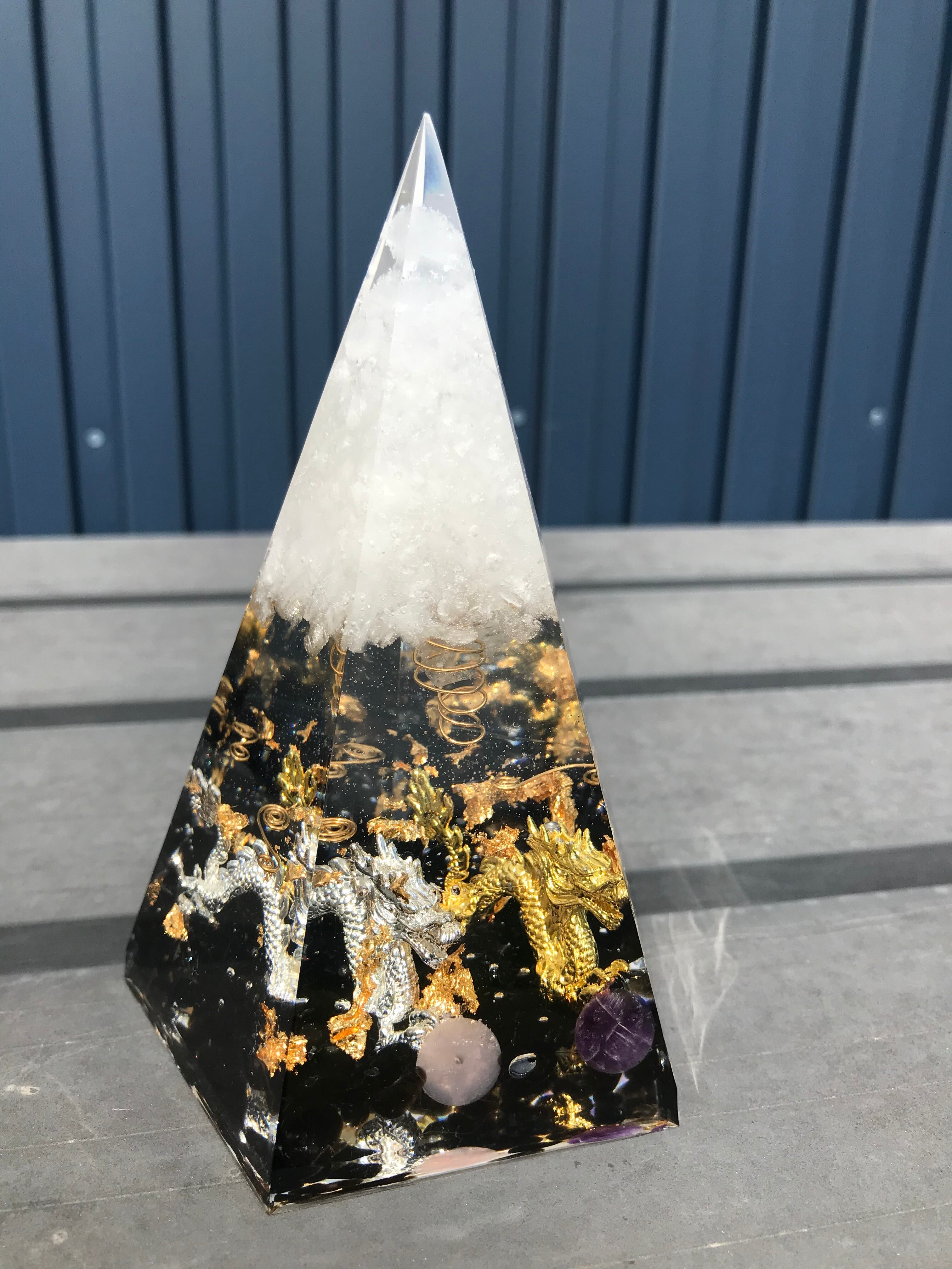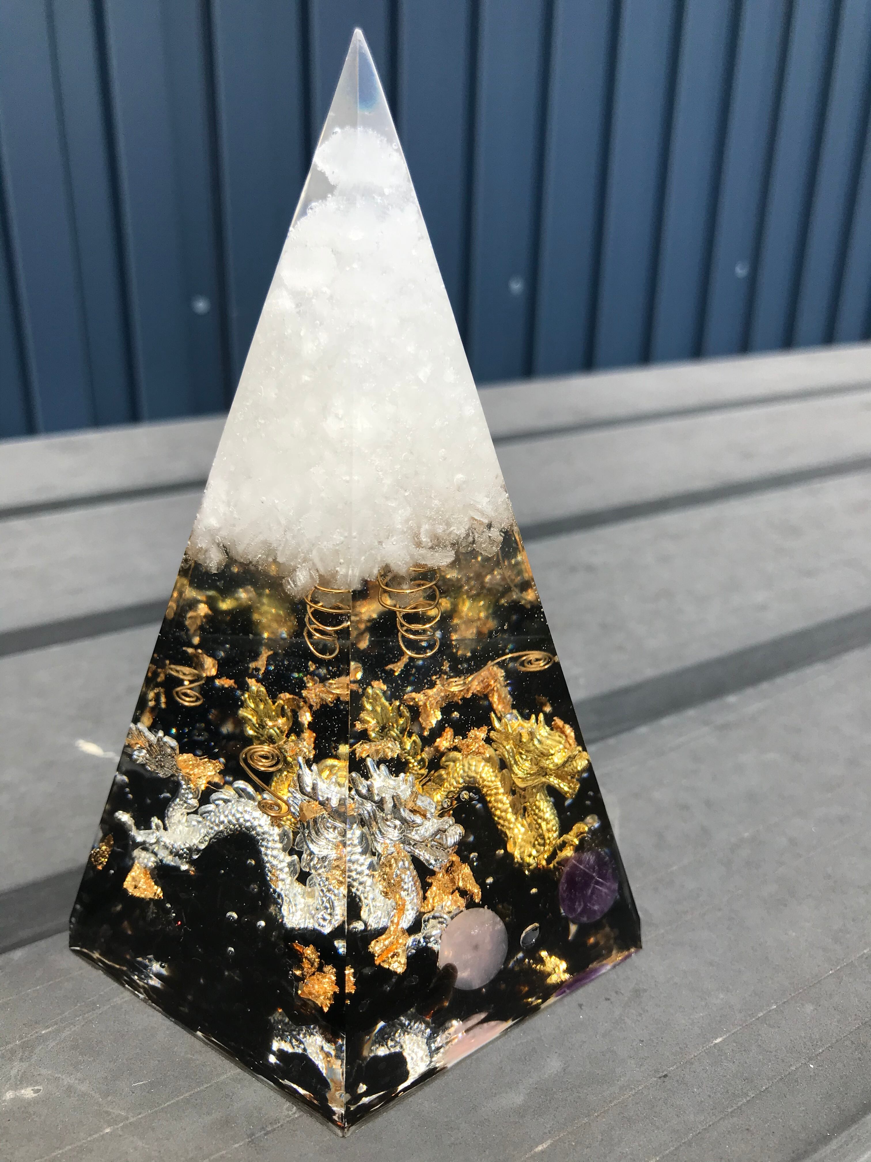 オルゴナイトは、金属や水晶などの鉱物(無機物)樹脂(有機物)で固めたもので、自然界に存在するネガティブなエネルギー(電磁波・放射線・想念など)を吸収し、ポジティブなオルゴン・エネルギーを発生する装置と言われています。