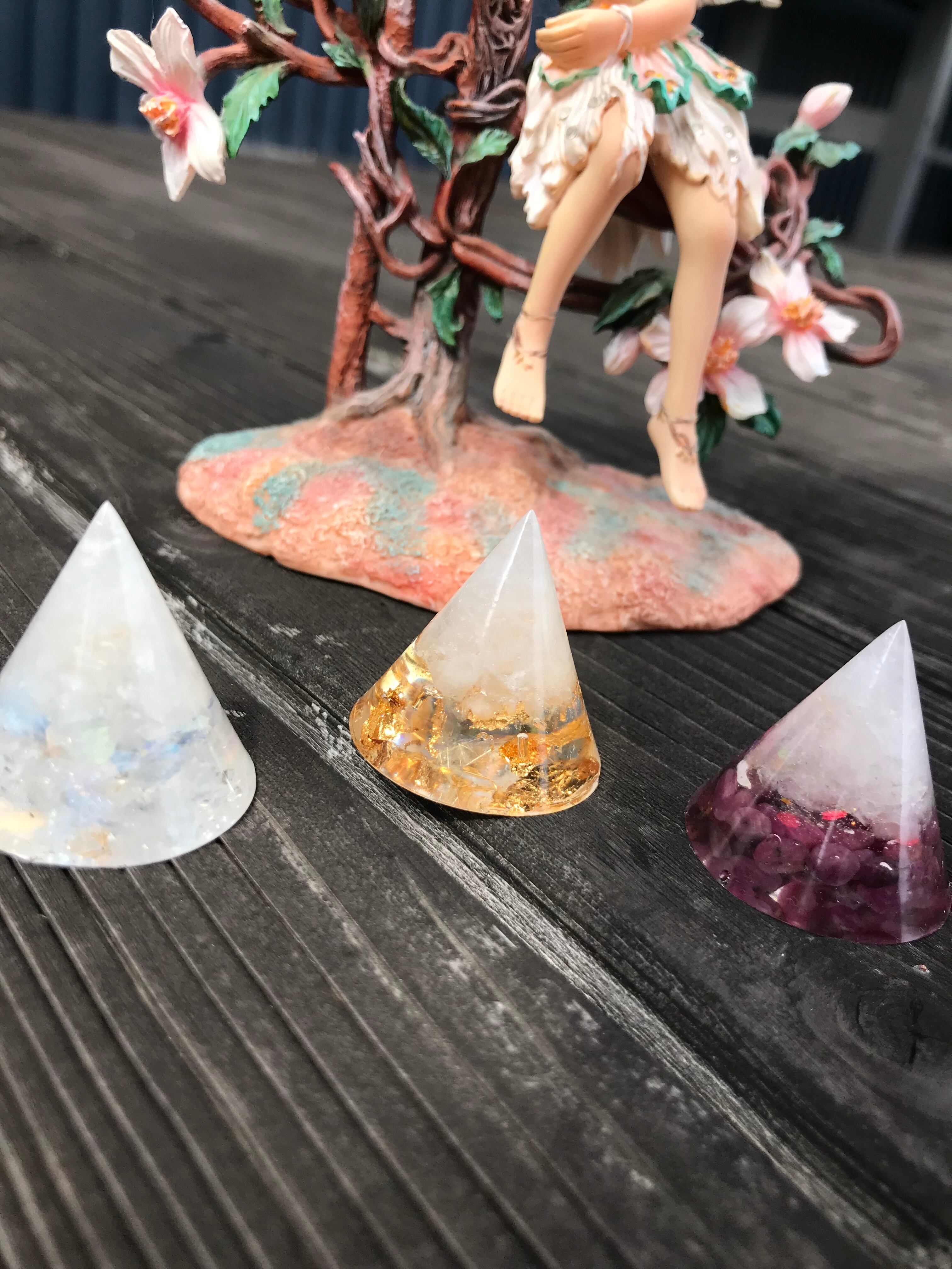 オルゴナイトは、金属や水晶などの鉱物(無機物)樹脂(有機物)で固めたもので、自然界に存在するネガティブなエネルギー(電磁波・放射線・想念など)を吸収し、ポジティブなオルゴン・エネルギーを発生する装置と言われています。