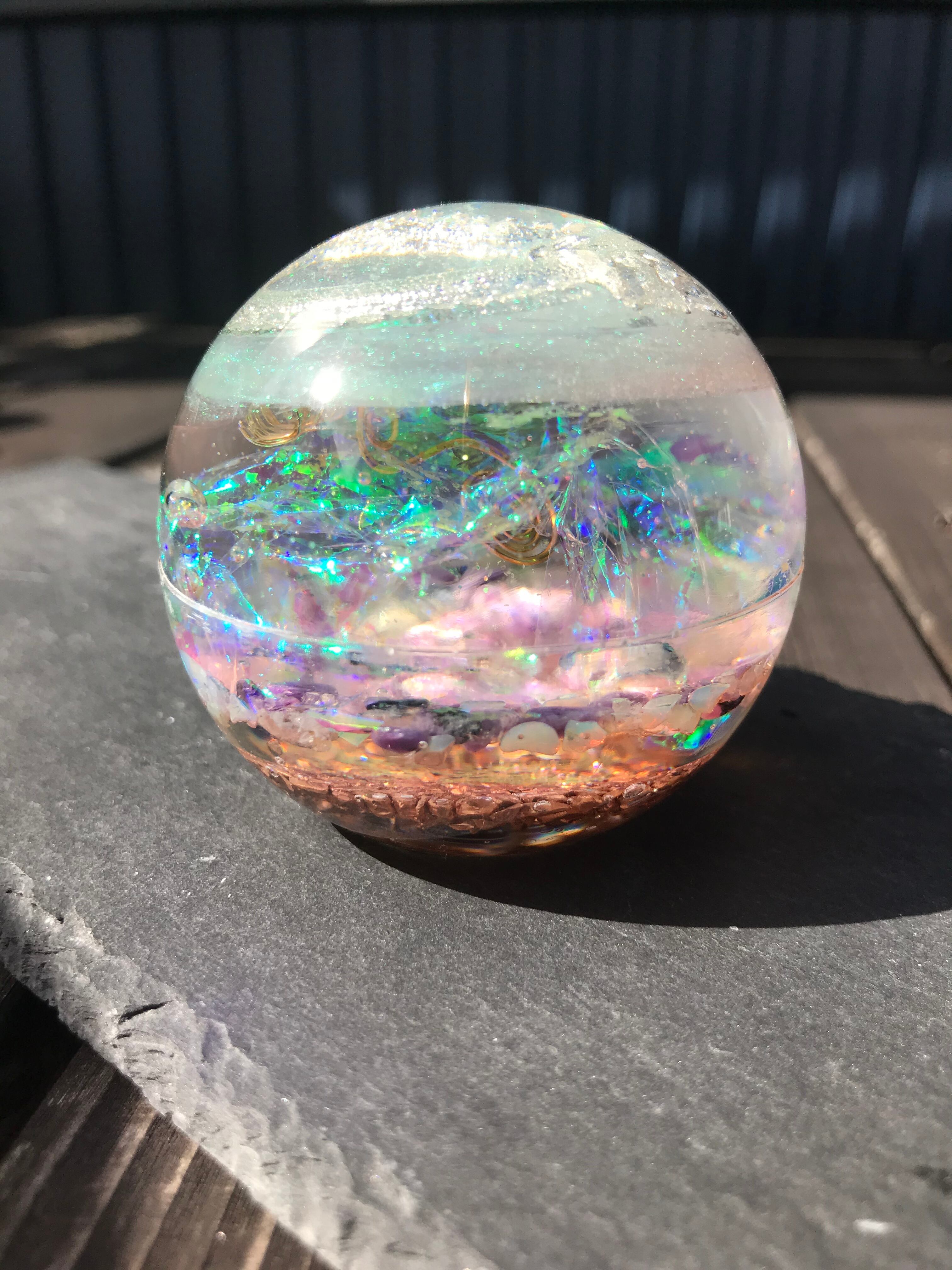 オルゴナイトは、金属や水晶などの鉱物(無機物)樹脂(有機物)で固めたもので、自然界に存在するネガティブなエネルギー(電磁波・放射線・想念など)を吸収し、ポジティブなオルゴン・エネルギーを発生する装置と言われています。